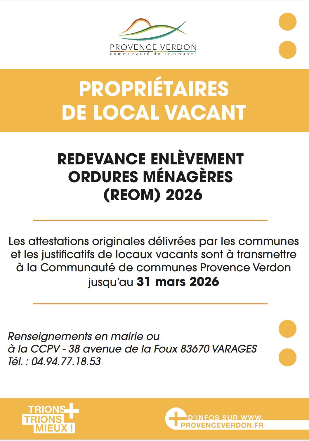 📌 Pour la Redevance d’Enlèvement des Ordures Ménagères (REOM) 2026,